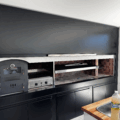 Fabricados a medida, este modelo es de 3900 mm , puede tener puertas o cajoneras con guías telescópicas, en materiales de 1.2mm de espesor , pinturas epoxi o esmaltados satinados , poseen cables de acero de 4 mm , rieles de aluminio y ruedas estabilizadoras, suaves al subir y bajar y nada de temblor los días de viento.